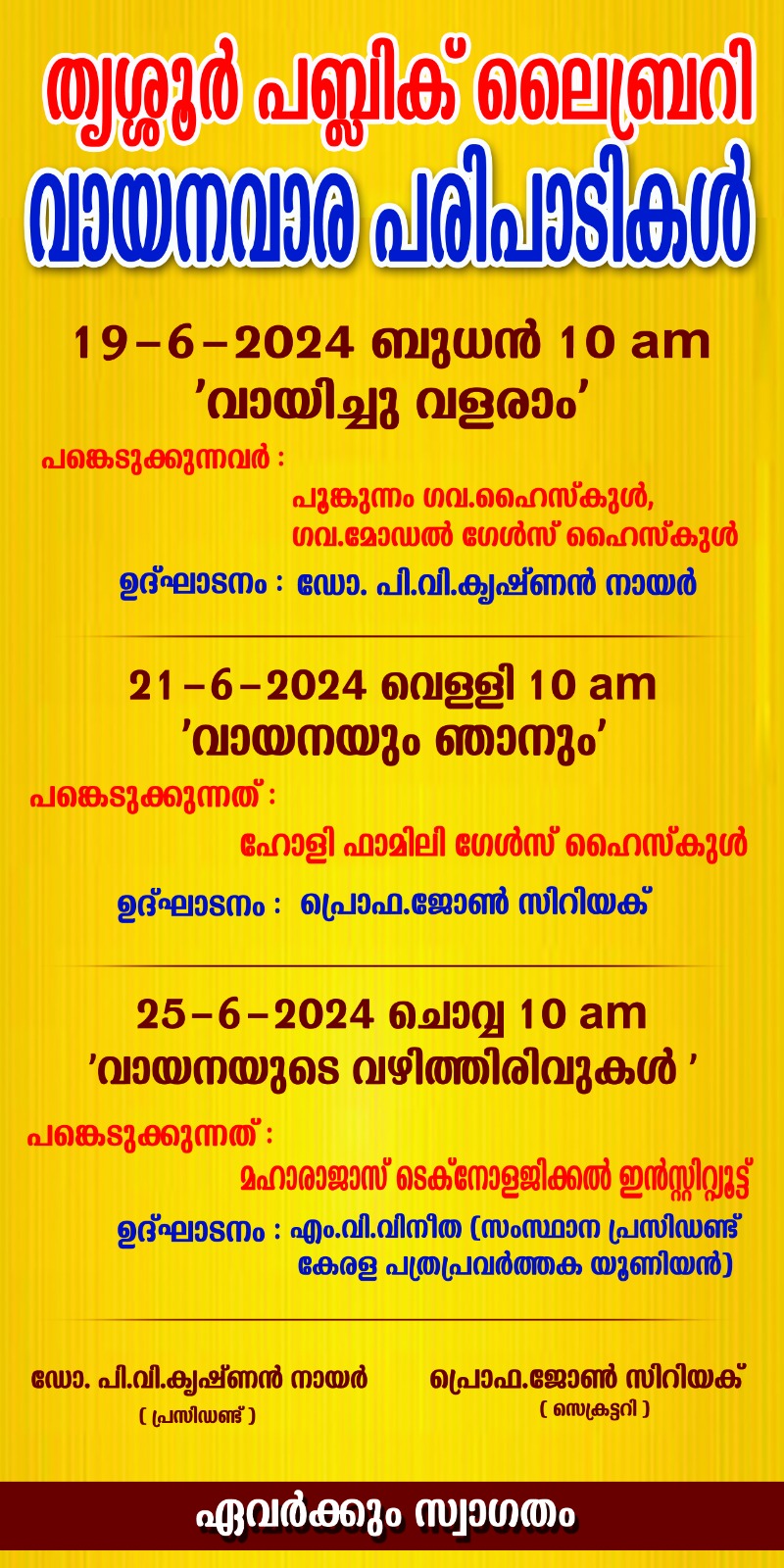 Trichur Public Library shifted to the present Town Hall on 20th September 1939 @ 5 pm and inaugurated by Diwan of Cochin Sir Shanmukham Chetty.